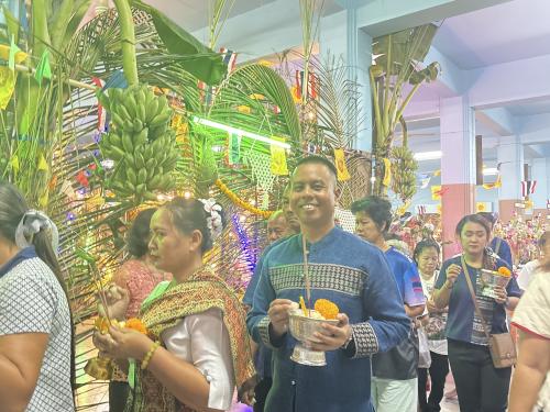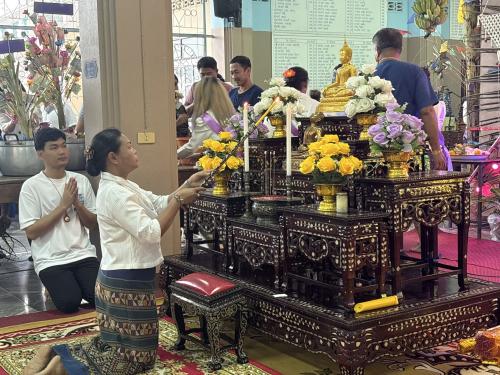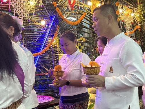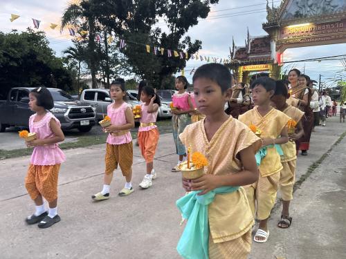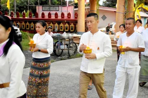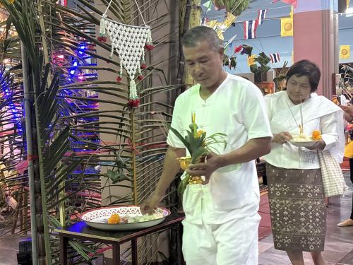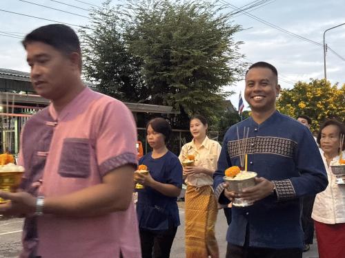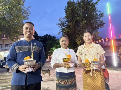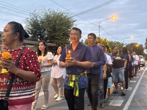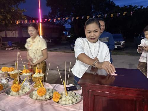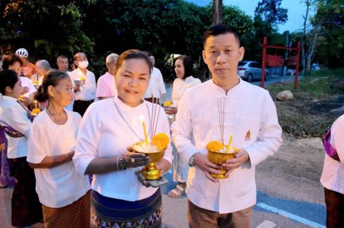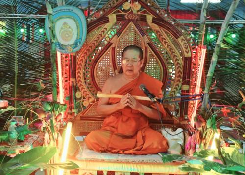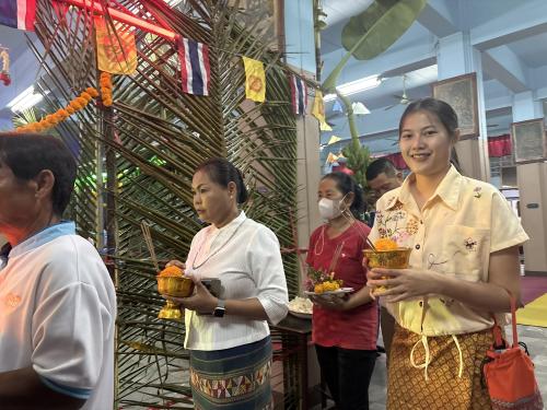 โดยผู้ตรวจราชการกรม ได้นำบุคลากรศูนย์ศึกษาและพัฒนาชุมชนนครนายก ร่วมขบวนแห่เวียนรอบศาลาโรงธรรม 3 รอบ แล้วจึงนำข้าวพันก้อนไปใส่ไว้ในภาชนะที่จัดเตรียมไว้ ที่หลักธงไชยทั้ง 8 ทิศ แล้วจึงเป็นประธานในพิธีจุดธูปเทียนบูชาพระรัตนตรัย และฟังเทศน์พระเวสสันดรชาดกหรือเทศน์มหาชาติ กัณฑ์ทศพร โดยมีความเชื่อว่าหากใครฟังเทศน์เรื่องพระเวสสันดรจบ ผู้นั้นจะได้รับอานิสงส์มาก