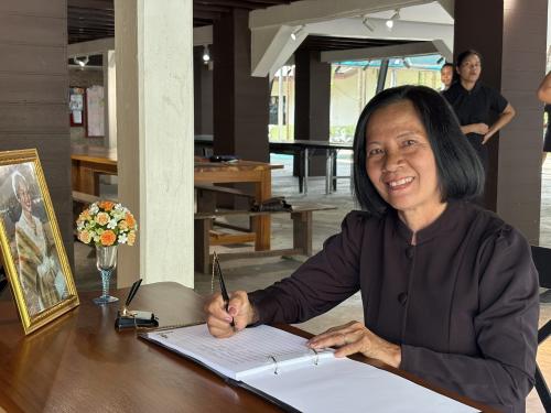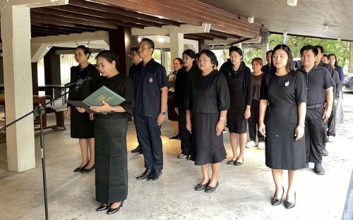 โอกาสนี้ ผู้ตรวจราชการกรม ได้นำบุคลากรในสังกัดยืนตรงสงบนิ่งเพื่อเป็นการถวายความอาลัย และน้อมรำลึกในพระมหากรุณาธิคุณ สมเด็จพระนางเจ้าสิริกิติ์ พระบรมราชินีนาถ พระบรมราชชนนีพันปีหลวง เป็นเวลา 93 วินาที พิธีกรอ่านพระราชประวัติ จากนั้นผู้ตรวจราชการกรมได้กล่าวน้อมรำลึกในพระมหาณาธิคุณ บุคลากรศูนย์ศึกษาและพัฒนาชุมชนนครนายกร่วมน้อมจิตถวายเป็นพระราชกุศล และลงนามถวายอาลัยแด่สมเด็จพระนางเจ้าสิริกิติ์ พระบรมราชินีนาถ พระบรมราชชนนีพันปีหลวง ซึ่งพระองค์จะทรงสถิตกลางใจประชาราษฎร์ ด้วยสำนึกในพระมหากรุณาธิคุณตราบนิจนิรันดร์