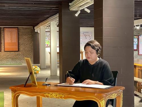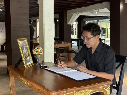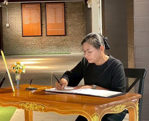 นางสาวณัฐนิช อินทสระ ผู้ตรวจราชการกรม ปฏิบัติหน้าที่ผู้อำนวยการศูนย์ศึกษาและพัฒนาชุมชนนครนายก นางสาวนิรดา สงวนคัมธรณ์ ผู้อำนวยการกลุ่มงานบริการทางวิชาการ นายอำเภอ มาพวง ผู้อำนวยการกลุ่มงานตรวจราชการ นางสาวแพรวพรรณ พุกพันธ์ ผู้อำนวยการกลุ่มงานวิจัยและพัฒนาชุมชนเชิงพื้นที่ นำเจ้าหน้าที่ และมดงาน ศูนย์ศึกษาและพัฒนาชุมชนนครนายก ดำเนินกิจกรรม “รวมพลังแห่งความภักดี” ร่วมพิธีน้อมรำลึกในพระมหากรุณาธิคุณ และลงนามถวายอาลัย สมเด็จพระนางเจ้าสิริกิติ์ พระบรมราชินีนาถ พระบรมราชชนนีพันปีหลวง บรรยากาศเป็นไปด้วยความสงบ สำรวม และเปี่ยมด้วยความอาลัยอย่างสุดซึ้ง
