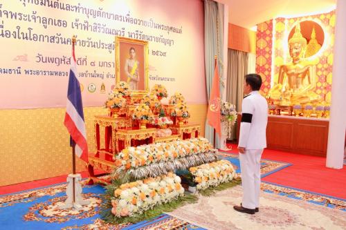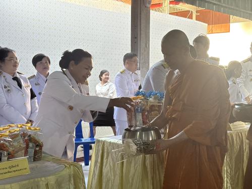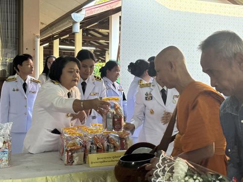 ภายหลังเสร็จสิ้นพิธีเจริญพระพุทธมนต์ ผู้ตรวจราชการกรมได้นำคณะร่วมพิธีทำบุญตักบาตรข้าวสารอาหารแห้ง พระสงฆ์และสามเณร จำนวน 39 รูป เพื่อถวายเป็นพระราชกุศล เนื่องในโอกาสวันคล้ายวันประสูติ สมเด็จพระเจ้าลูกเธอ เจ้าฟ้าสิริวัณณวรี นารีรัตนราชกัญญา อันเป็นการบำเพ็ญกุศล แสดงความจงรักภักดี และน้อมสำนึกในพระมหากรุณาธิคุณ พร้อมทั้งส่งเสริมให้ประชาชนร่วมกันทำความดี ถวายเป็นพระราชกุศล และธำรงรักษาไว้ซึ่งชาติ ศาสนา และสถาบันพระมหากษัตริย์ให้มั่นคงสืบไป