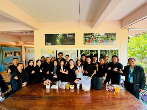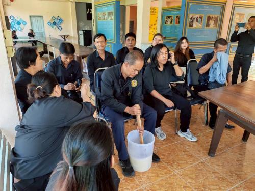 - สาธิตและฝึกปฏิบัติฐานเรียนรู้การสร้างอาชีพและพึ่งพาตนเอง จำนวน 5 ฐาน จากทีมวิทยากร ศพช.นครนายก ประกอบด้วย