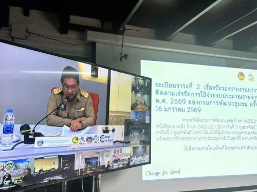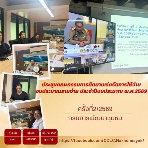 ศพช.นครนายก ร่วมประชุมคณะกรรมการติดตามเร่งรัดการใช้จ่ายงบประมาณรายจ่ายประจำปีงบประมาณ พ.ศ. 2569 ของกรมการพัฒนาชุมชน ครั้งที่ 2/2569