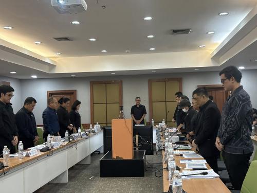 โดยก่อนเริ่มการประชุม ที่ประชุมได้ร่วมกันยืนสงบนิ่งถวายความอาลัยแด่สมเด็จพระนางเจ้าสิริกิติ์ พระบรมราชินีนาถ พระบรมราชชนนีพันปีหลวง จากนั้นจึงดำเนินกิจกรรมส่งเสริมคุณธรรมจริยธรรมแก่บุคลากรในองค์กร ได้แก่ การสวดมนต์ไหว้พระ การประกาศนโยบายการต่อต้านการทุจริตคอร์รัปชัน การต่อต้านการรับสินบน (Anti-Bribery Policy) และนโยบาย “งดรับ งดให้” (No Gift Policy)