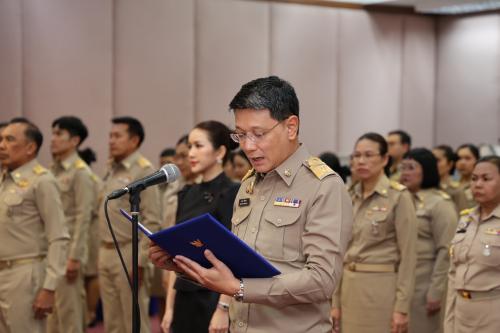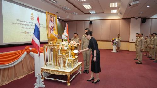 โอกาสนี้ นายสยาม ศิริมงคล อธิบดีกรมการพัฒนาชุมชน ได้กล่าวสำนึกในพระกรุณาธิคุณ ใจความว่า ข้าราชการและเจ้าหน้าที่กรมการพัฒนาชุมชนมีความปลาบปลื้มปีติเป็นล้นพ้น ที่ได้มาร่วมกันแสดงความจงรักภักดี และสำนึกในพระกรุณาธิคุณในครั้งนี้ พร้อมน้อมสำนึกในพระกรุณาธิคุณที่ทรงปฏิบัติพระกรณียกิจนานัปการเพื่อประโยชน์สุขของพสกนิกรชาวไทย โดยเฉพาะพระกรณียกิจด้านการสืบสานและต่อยอดศิลปวัฒนธรรมไทย รวมถึงการส่งเสริมผ้าไทยและงานหัตถกรรมไทยให้เป็นที่ประจักษ์ในระดับสากล สร้างคุณค่าและมูลค่าเพิ่มแก่ชุมชนและผู้ประกอบการท้องถิ่น
