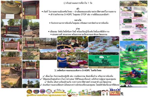 สำหรับอำเภอศรีมโหสถ ถือเป็นพื้นที่ที่มีศักยภาพด้านการท่องเที่ยวเชิงประวัติศาสตร์ โบราณคดี วัฒนธรรม และทรัพยากรธรรมชาติ ซึ่งสามารถนำมาบูรณาการกับกิจกรรม D-HOPE ได้อย่างเหมาะสม อาทิ โบราณสถานเมืองศรีมโหสถ วัดต้นโพธิ์ศรีมหาโพธิ์ สระมรกตและพื้นที่ธรรมชาติโดยรอบ รวมถึงชุมชนท่องเที่ยว OTOP นวัตวิถีบ้านโคกวัด ที่มีผลิตภัณฑ์และกิจกรรมสะท้อนอัตลักษณ์ท้องถิ่นอย่างชัดเจน
