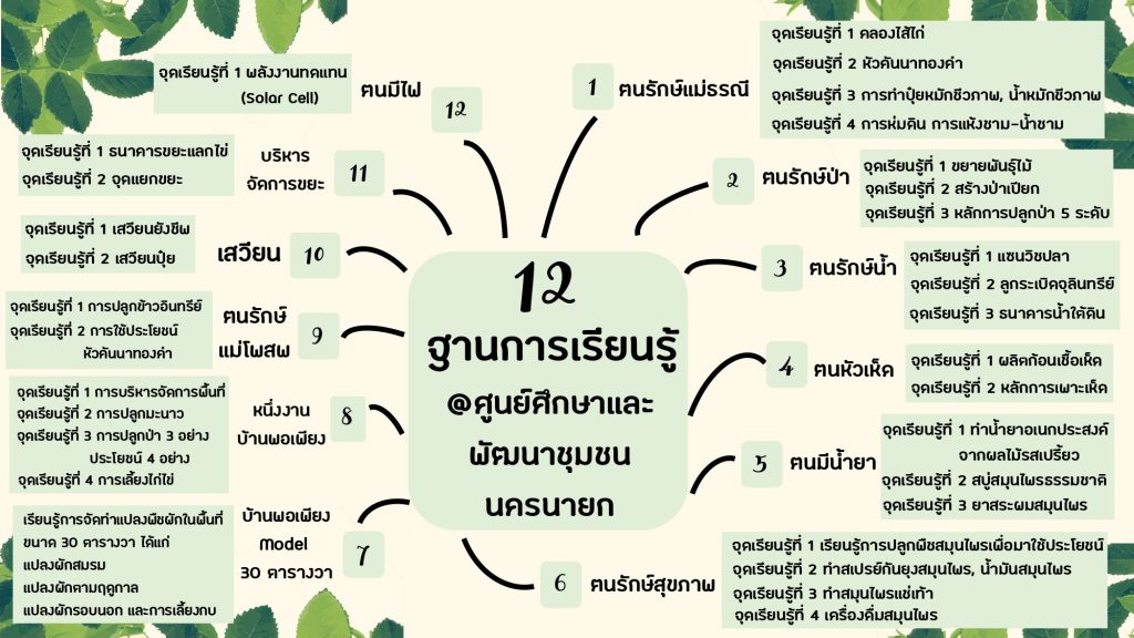 ฐานเรียนรู้ ศูนย์ศึกษาและพัฒนาชุมชนนครนายก จำนวนทั้งสิ้น 12 ฐานเรียนรู้