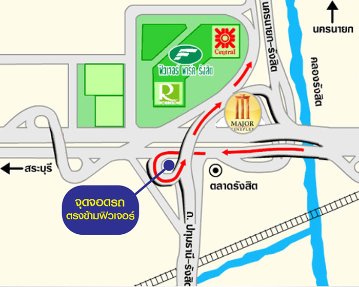 จากกรุงเทพฯ ใช้ทางหลวงหมายเลข 305 (รังสิต-นครนายก) เลียบคลองรังสิต ผ่านอำเภอองครักษ์ มุ่งสู่อำเภอเมืองนครนายก ระยะทางประมาณ 107กม.